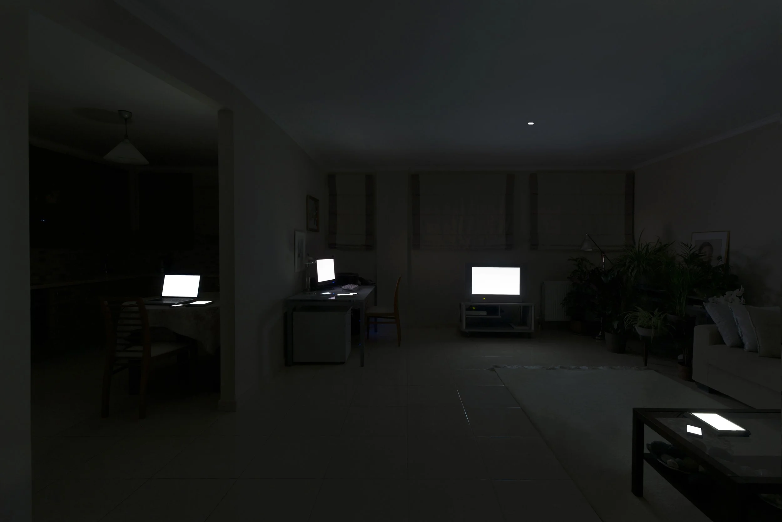 Acknowledging these facts made me look at these devices from a different perspective. In this series I create family portraits of devices, reversing the subject/object relation. In this casual scenery of our everyday life, our comfort zones this multitude of glowing immersive gates, like an opposite of black holes, promise limitless possibilities. Information, entertainment, human connection and much more, are available anywhere and anytime, breaking the physical bond with the reality that surrounds us.
