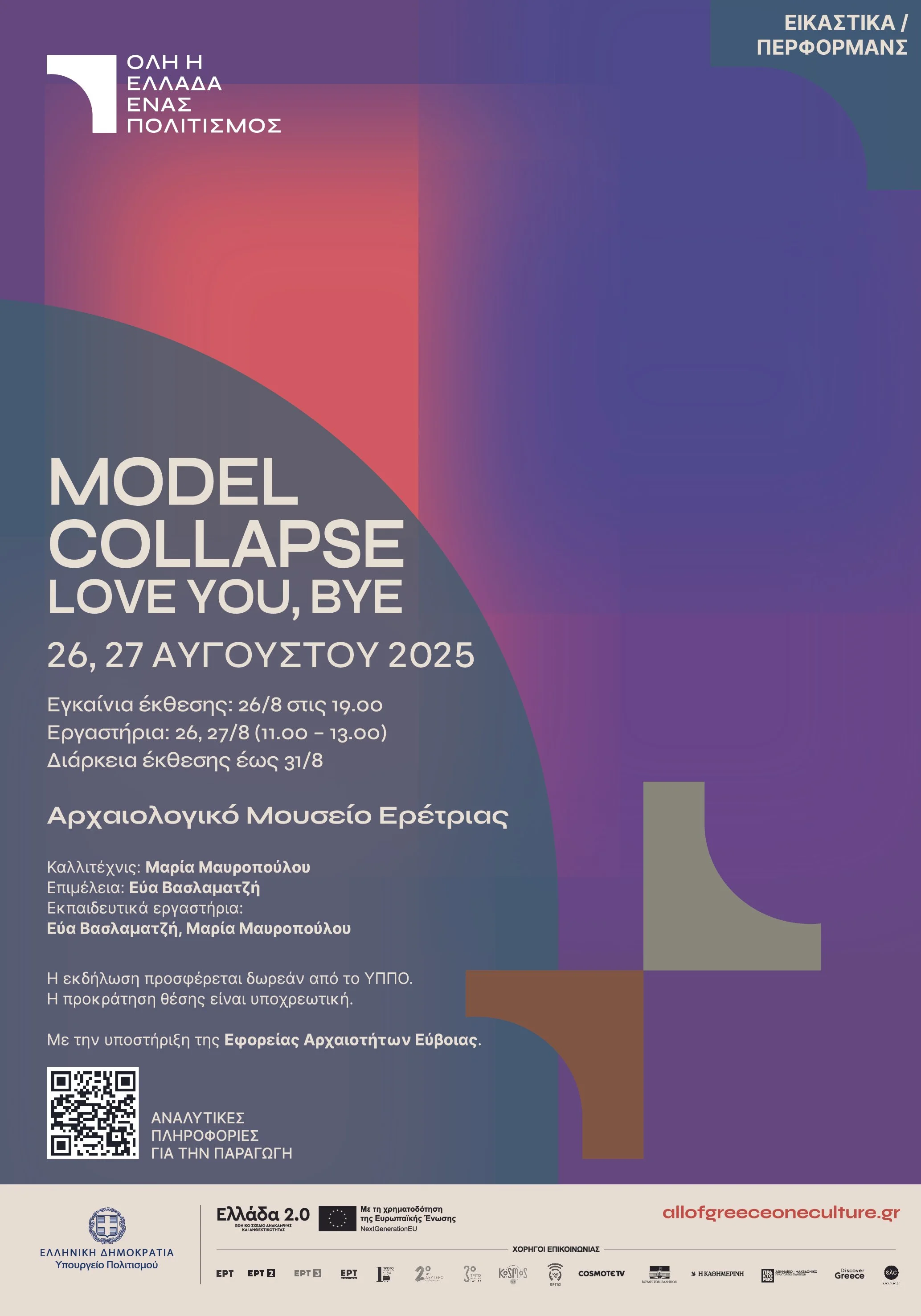 The exhibition is enriched by the dialectical relationship between the works and the archaeological findings on display at the Archaeological Museum of Eretria, a space that serves as a quintessential repository of collective memory.